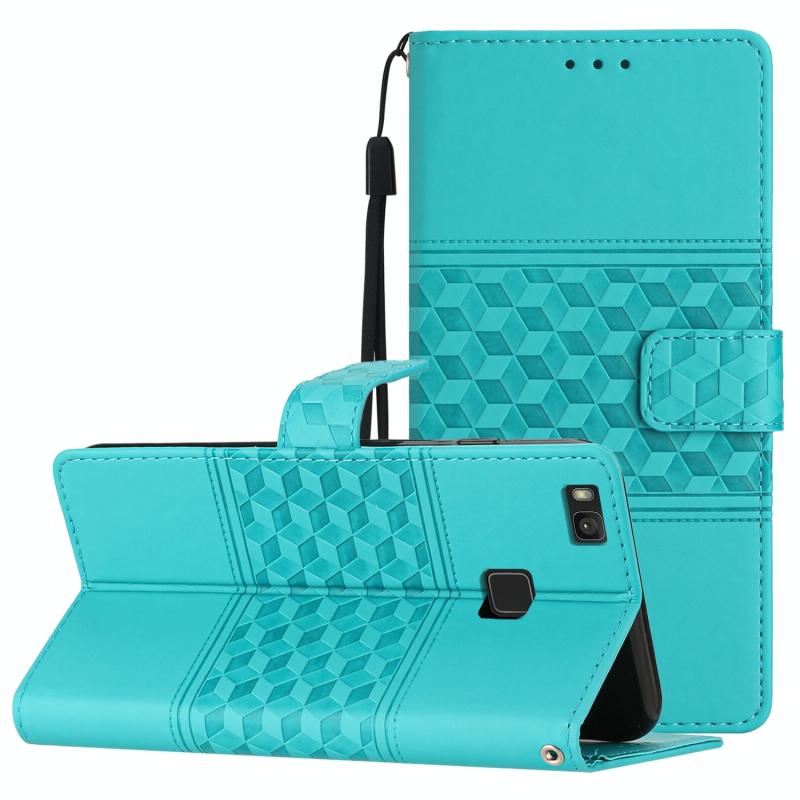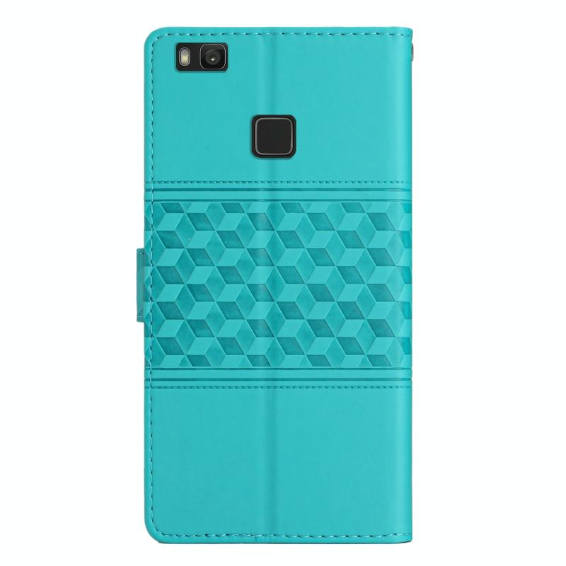 Θήκη τηλεφώνου Huawei P9 Lite με σχέδιο διαμαντιού, δερμάτινη υφή και λουρί (Μπλε)