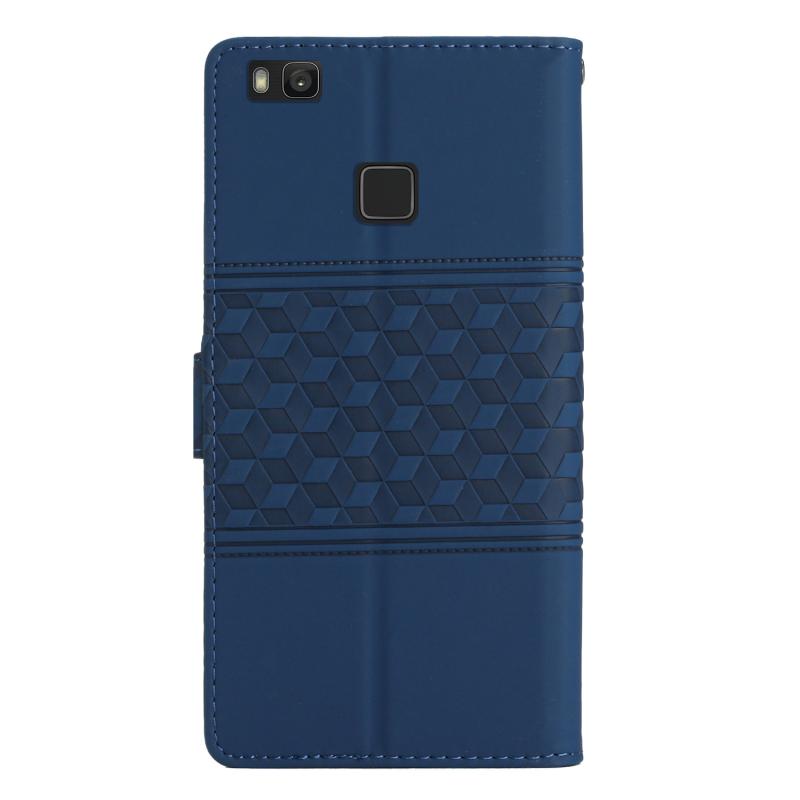 Θήκη τηλεφώνου Huawei P9 Lite με σχέδιο διαμαντιού, δερμάτινη υφή και λουρί (Σκούρο μπλε)
