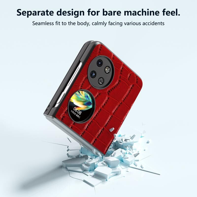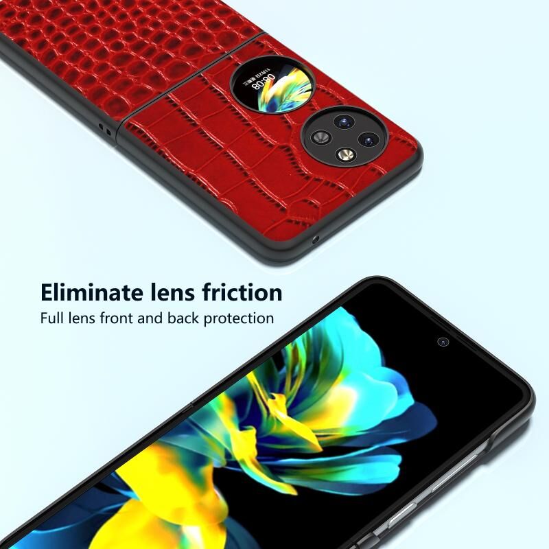 Θήκη τηλεφώνου Huawei Pocket 2 ABEEL από γνήσιο δέρμα με σχέδιο κροκόδειλου, μαύρο περίγραμμα (Κόκκινο)