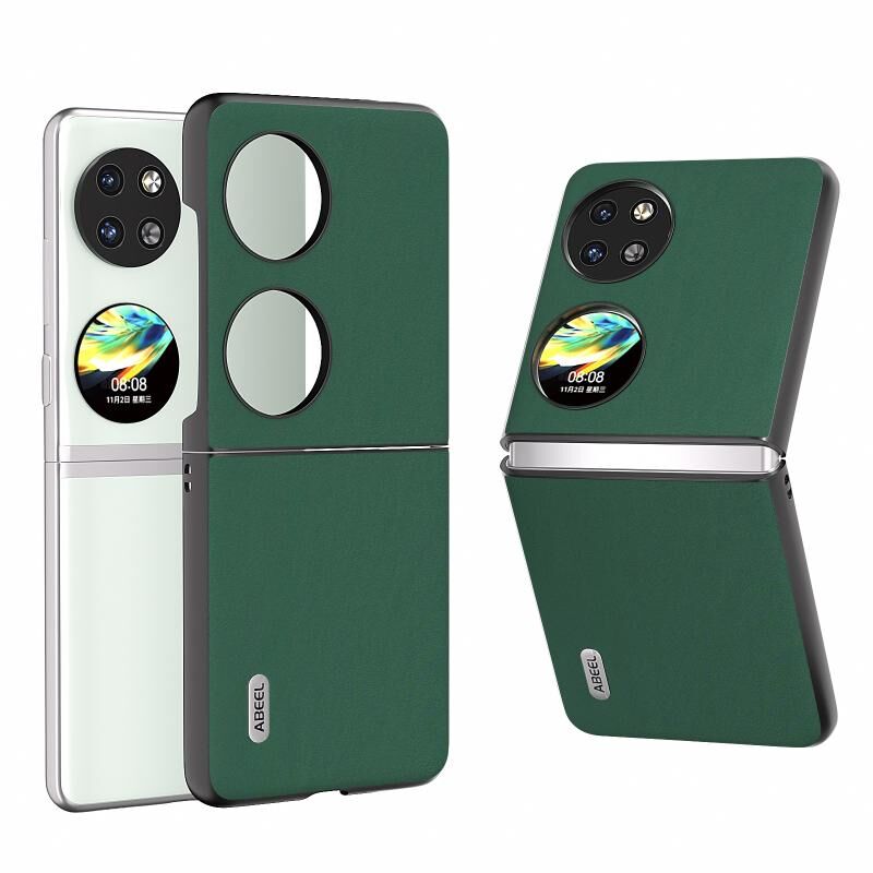 Θήκη τηλεφώνου από γνήσιο δέρμα Huawei Pocket 2 ABEEL, με μεταξένια απαλή μαύρη άκρη (Μπλε)