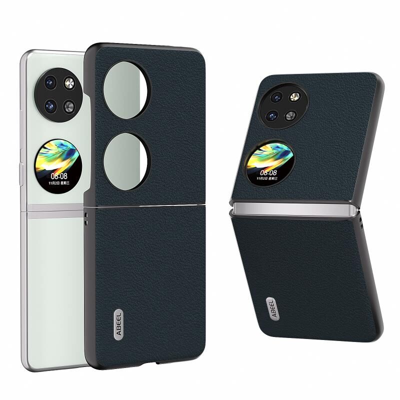 Θήκη τηλεφώνου από γνήσιο δέρμα για Huawei Pocket 2 ABEEL, Μαύρο Κυματιστό Χείλος (πράσινο)