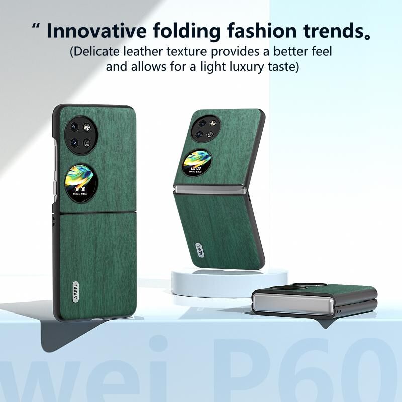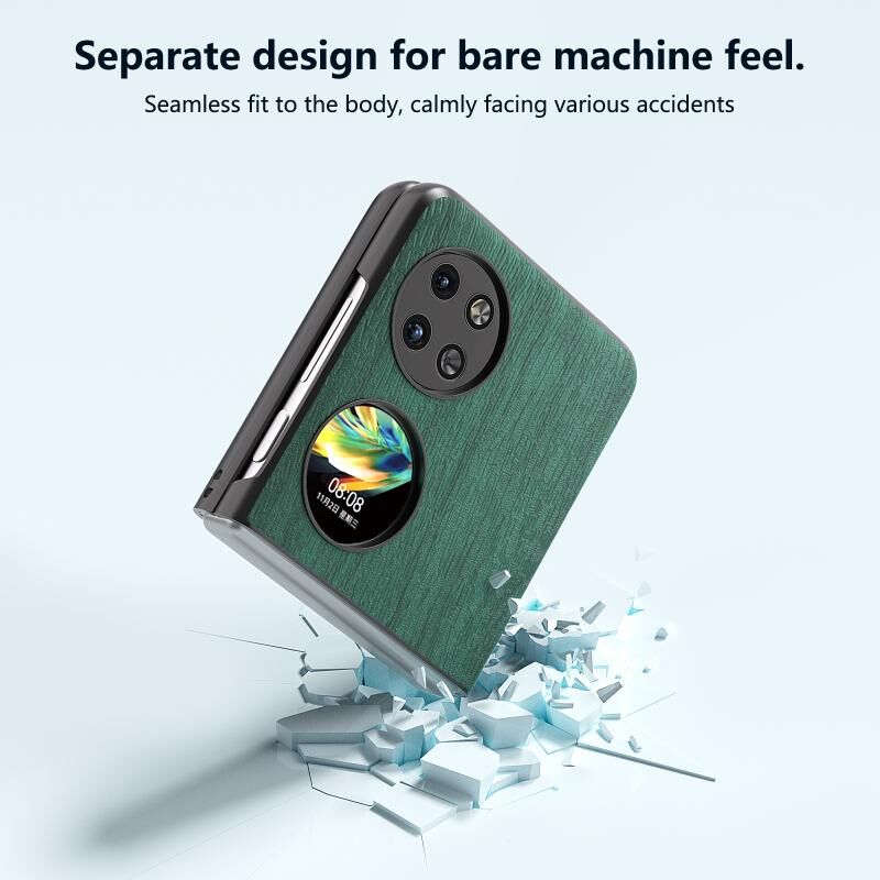 Θήκη τηλεφώνου Huawei Pocket 2 ABEEL με υφή ξύλου από PU (Πράσινο)