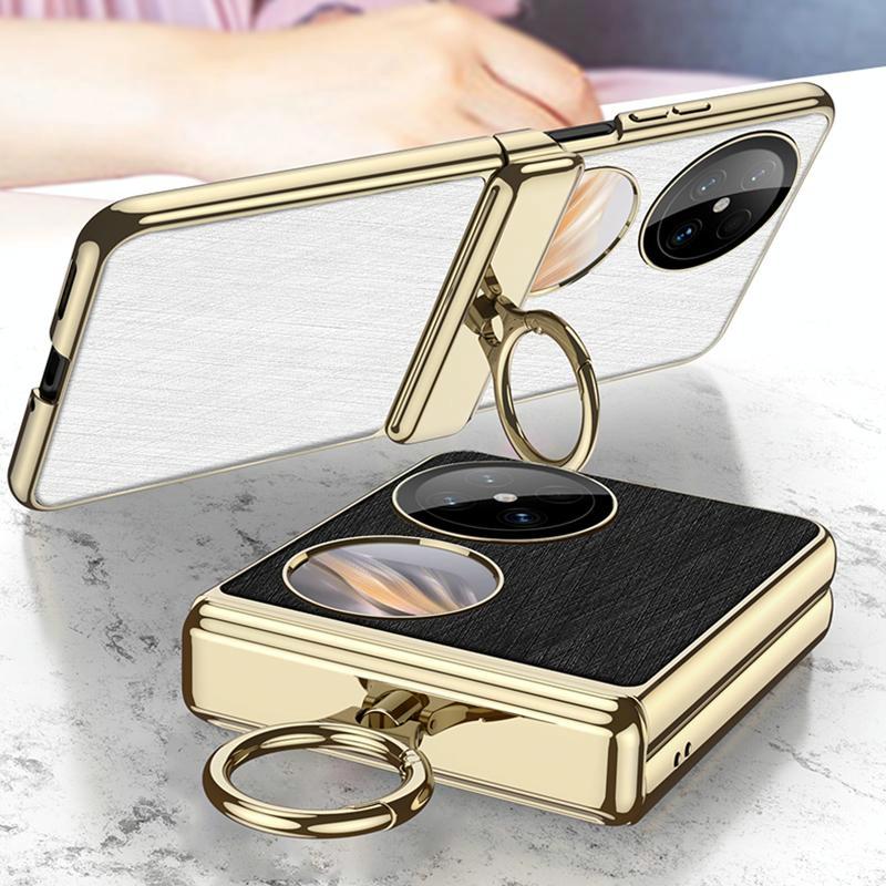 Για το Huawei Pocket 2 GKK Επιχρυσωμένο Απλό Δερμάτινο Μαγνητικό Κάλυμμα με Αρθρώσεις (Μαύρο) (GKK)