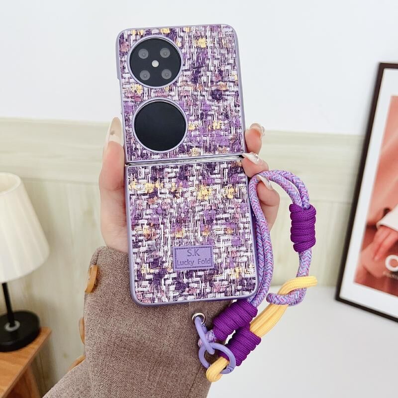 Για Huawei Pocket 2 Ψευδής χρώμα Weaving Υφή τηλέφωνο υπόθεση με το χρώμα λουράκι (μωβ)