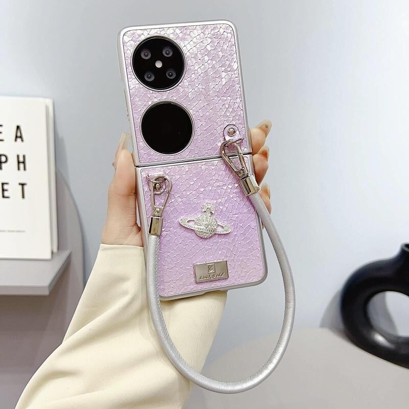 Θήκη κινητού Huawei Pocket 2 Kirin με πλήρη κάλυψη και λουρί καρπού (Λευκό)
