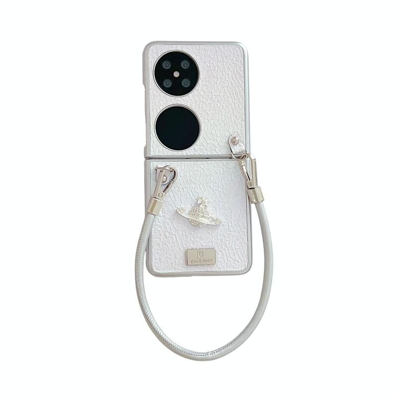 Θήκη κινητού Huawei Pocket 2 Kirin με πλήρη κάλυψη και λουρί καρπού (Λευκό)