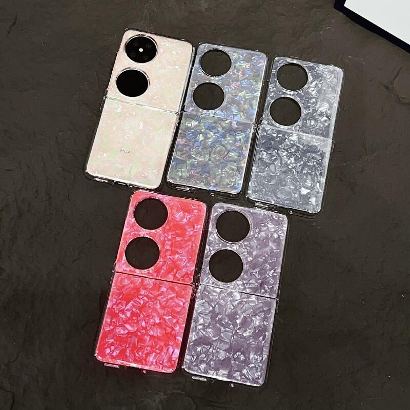 Για Huawei Pocket 2 Pearlescent Shell Υφή τηλέφωνο υπόθεση (ροζ πράσινο)