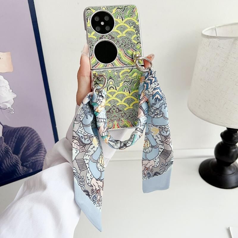 Θήκη κινητού Huawei Pocket 2 με κεντήματα "Ευοίωνη Νέφη" και πλήρη κάλυψη, με κασκόλ / βραχιόλι (Πράσινο)