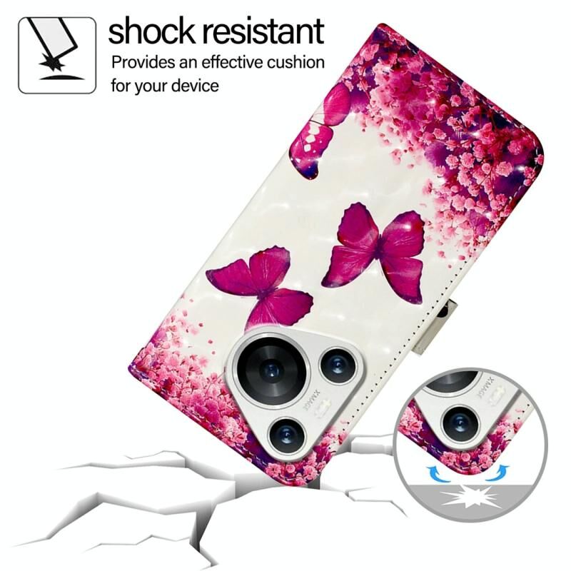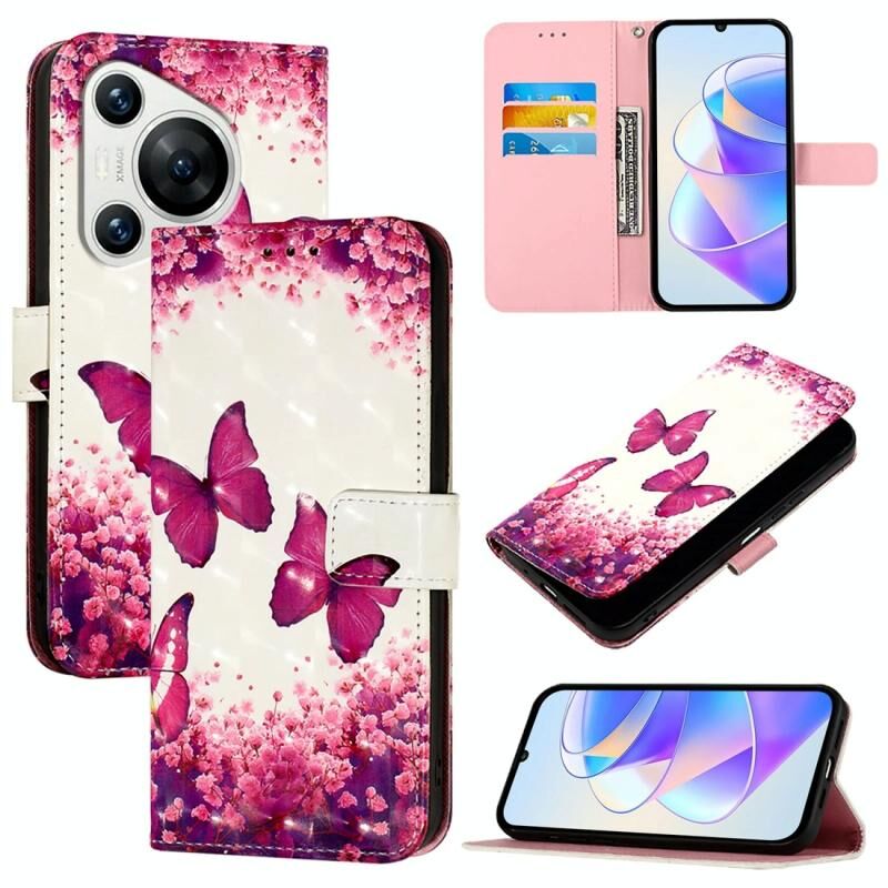 Θήκη τηλεφώνου Huawei Pura 70 3D Ζωγραφική Οριζόντια Αναδίπλωση Δερμάτινη (Ροζ Πεταλούδα)