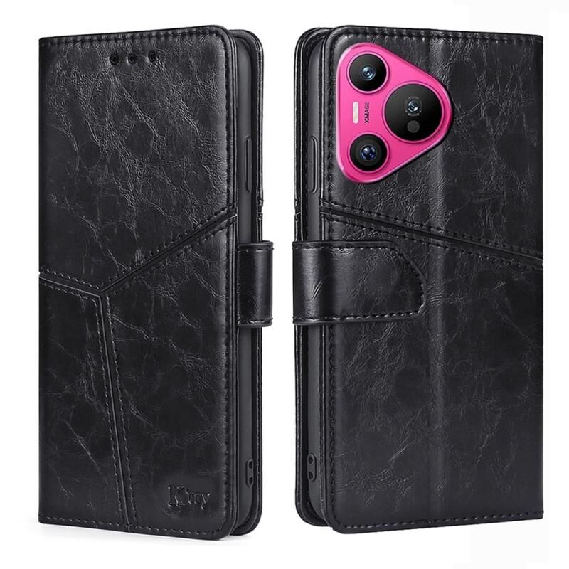 Για Huawei Pura 70 5G γεωμετρική ραφή δερμάτινη θήκη τηλεφώνου (μαύρο)
