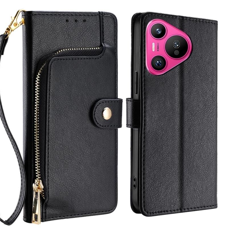 Για Huawei Pura 70 5G φερμουάρ τσάντα δερμάτινη θήκη τηλεφώνου (μαύρο)