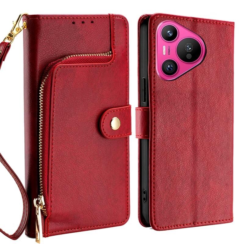 Για Huawei Pura 70 5G φερμουάρ τσάντα δερμάτινη θήκη τηλεφώνου (κόκκινο)