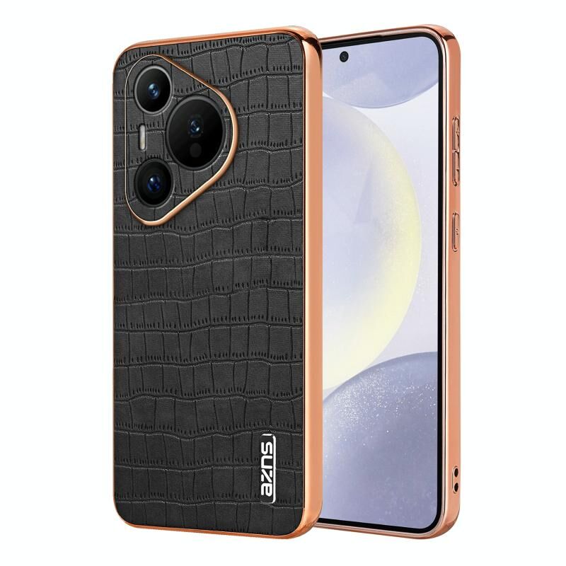 Θήκη κινητού τηλεφώνου πλήρους κάλυψης με ηλεκτρολυτικό πλαίσιο και υφή κροκόδειλου για Huawei Pura 70 AZNS (Μαύρο) (AZNS)