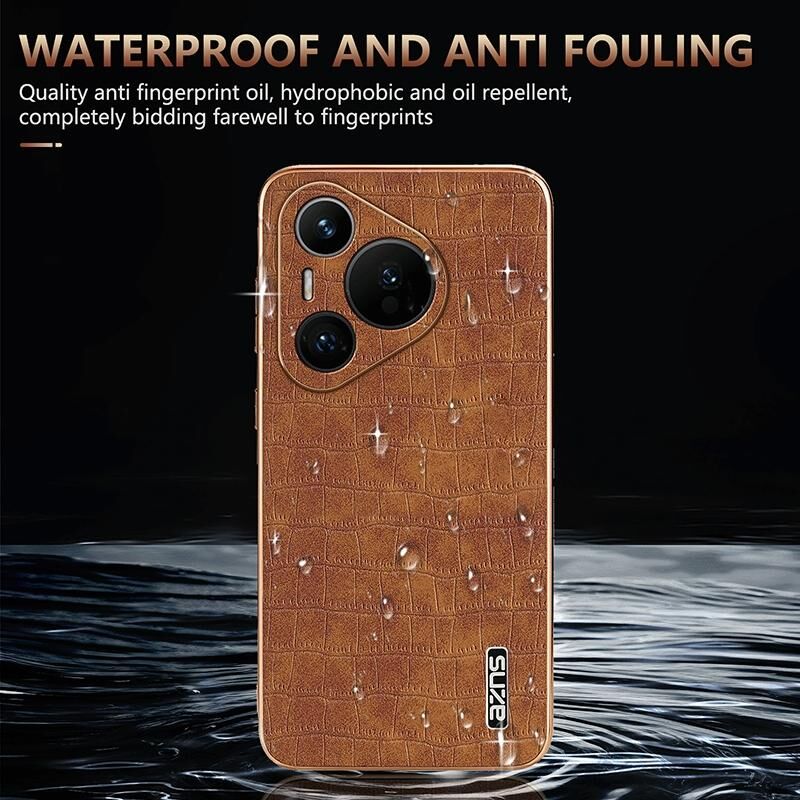 Θήκη κινητού τηλεφώνου πλήρους κάλυψης με ηλεκτρολυτικό πλαίσιο και υφή κροκόδειλου για Huawei Pura 70 AZNS (Μαύρο) (AZNS)