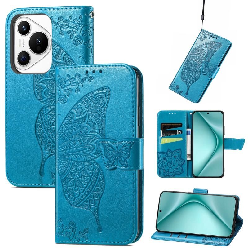 Θήκη τηλεφώνου Huawei Pura 70 Butterfly Love Flower Embossed Leather (Μπλε)