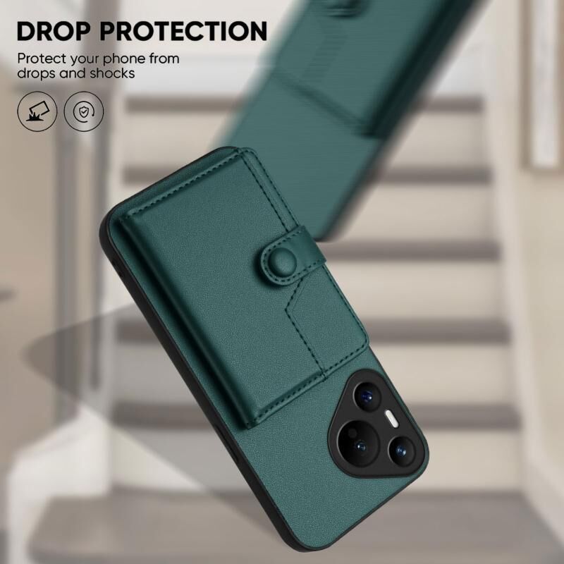 Για Huawei Pura 70 Button Card Bag RFID Anti-theft τηλέφωνο υπόθεση (Πράσινο)