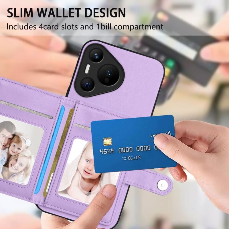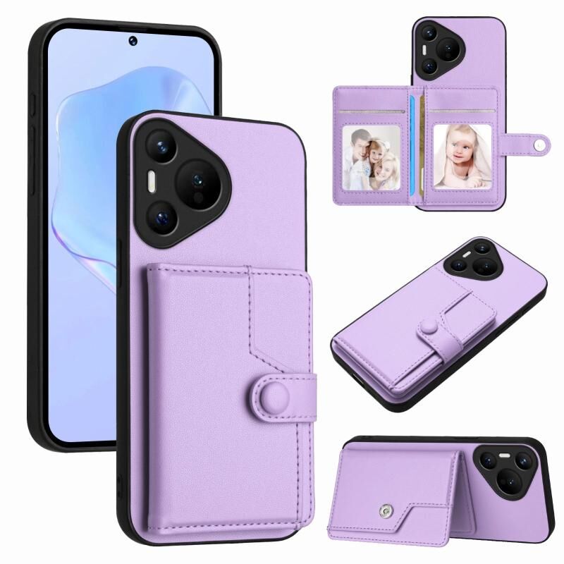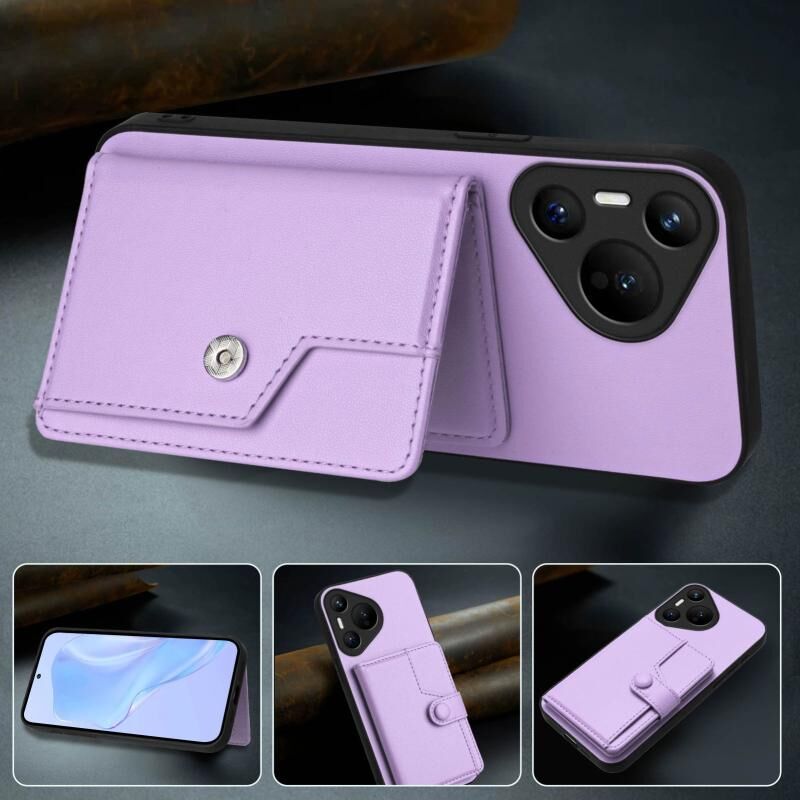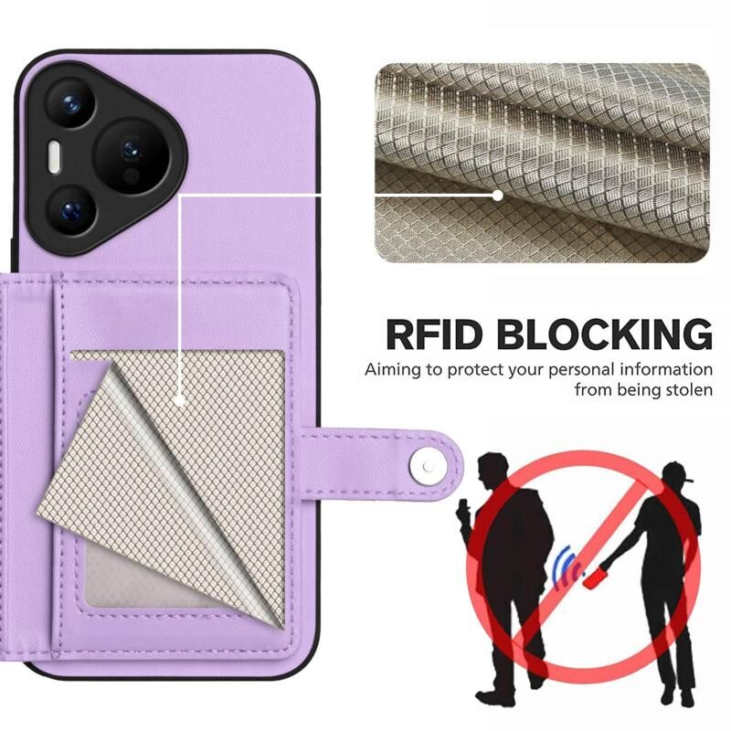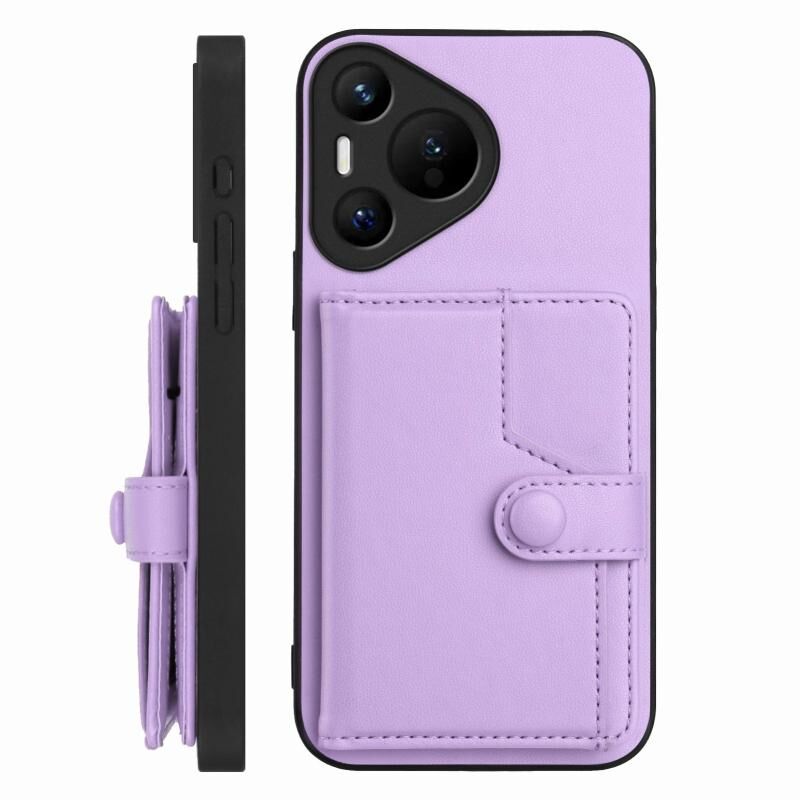 Για Huawei Pura 70 Button Card Bag RFID Anti-theft τηλέφωνο υπόθεση (μωβ)