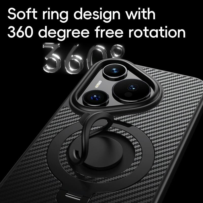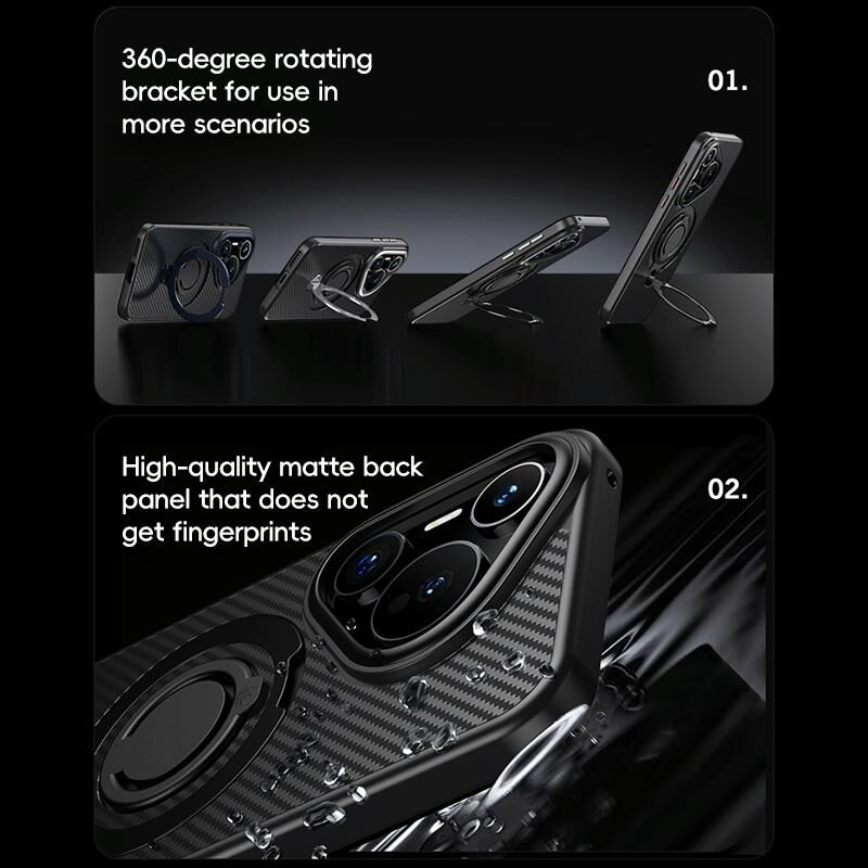 Θήκη τηλεφώνου Huawei Pura 70 από ανθρακονήματα με MagSafe και περιστρεφόμενη βάση 360 μοιρών (Μαύρο Γκρι)