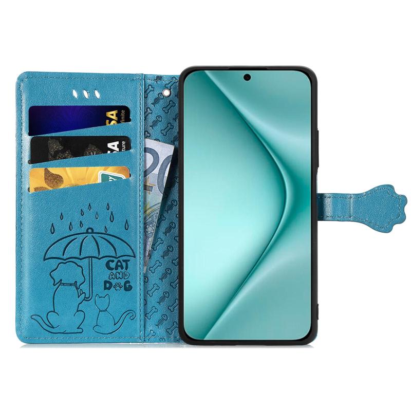 Θήκη Huawei Pura 70 με ανάγλυφο σχέδιο γάτας και σκύλου από δέρμα (Μπλε)