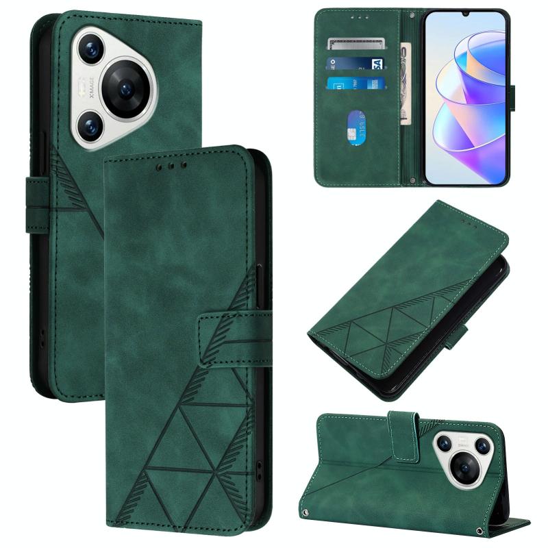 For Huawei Pura 70 Crossbody 3D Embossed Flip Leather Phone Case(Dark Green)
