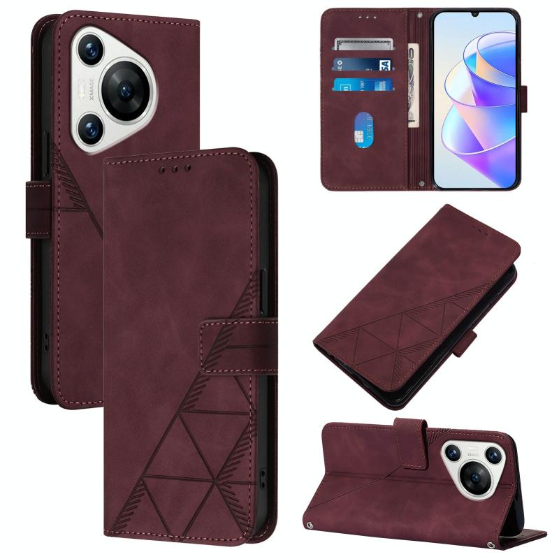 For Huawei Pura 70 Crossbody 3D Embossed Flip Leather Phone Case(Wine Red)