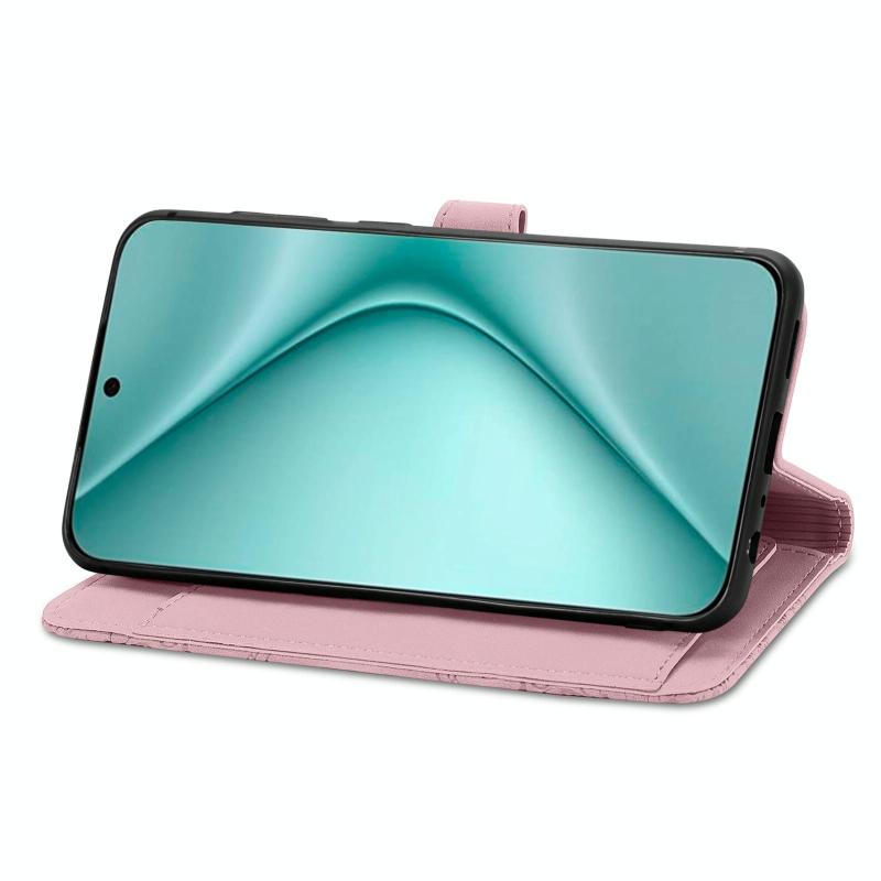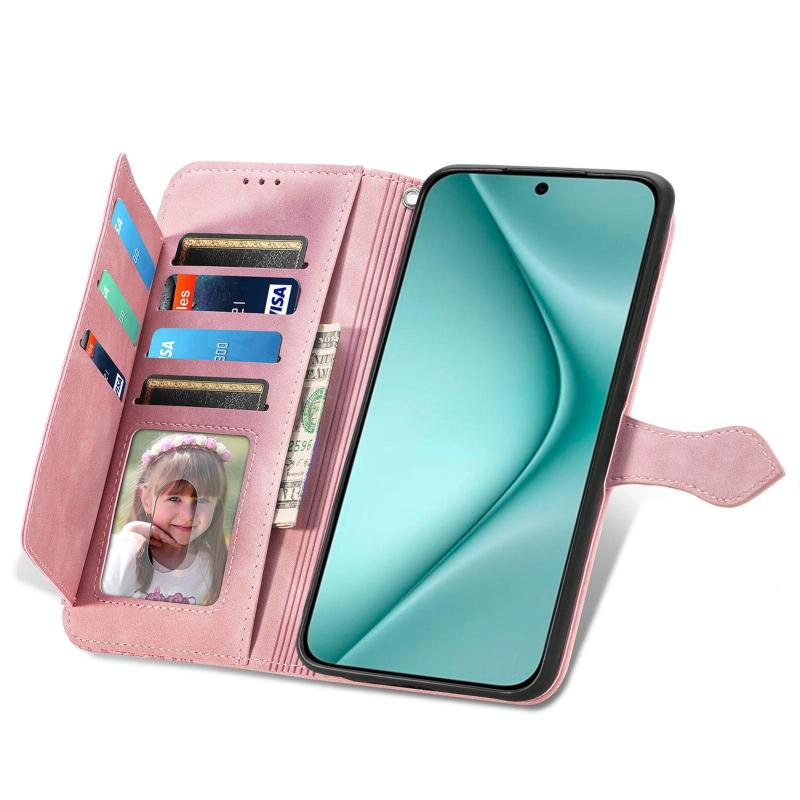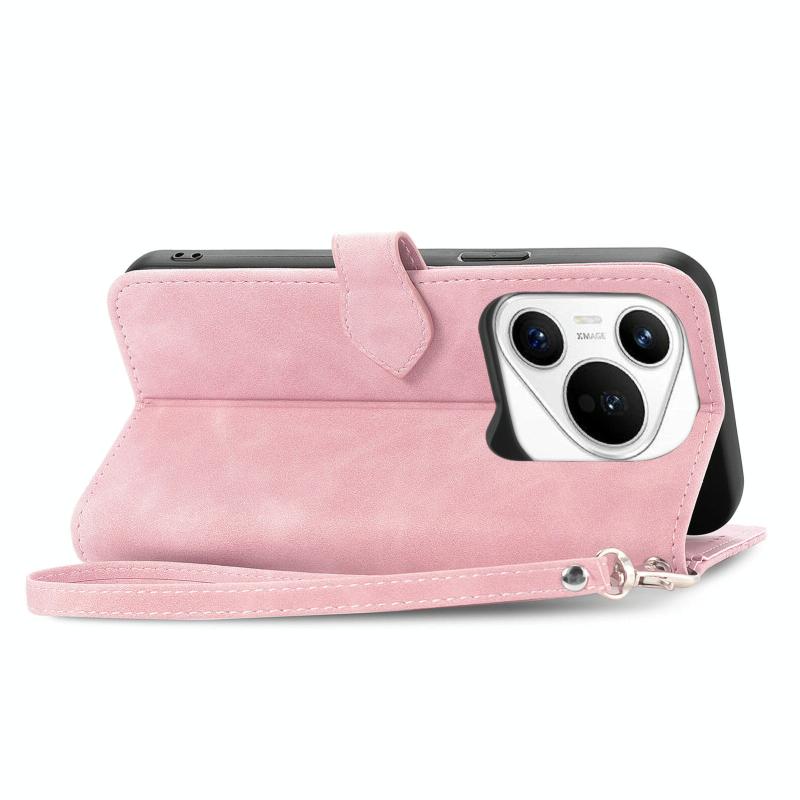 Θήκη Huawei Pura 70 Δερμάτινη με Ανάγλυφο Λουλούδι και Φερμουάρ (Ροζ)