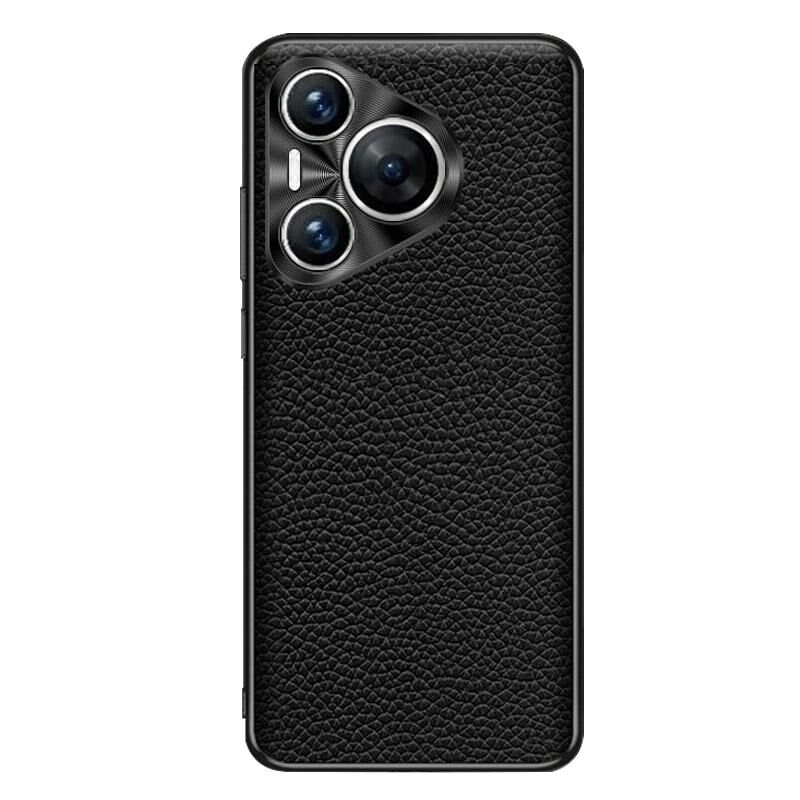 Θήκη τηλεφώνου από γνήσιο δέρμα Litchi για Huawei Pura 70 (Μαύρο)
