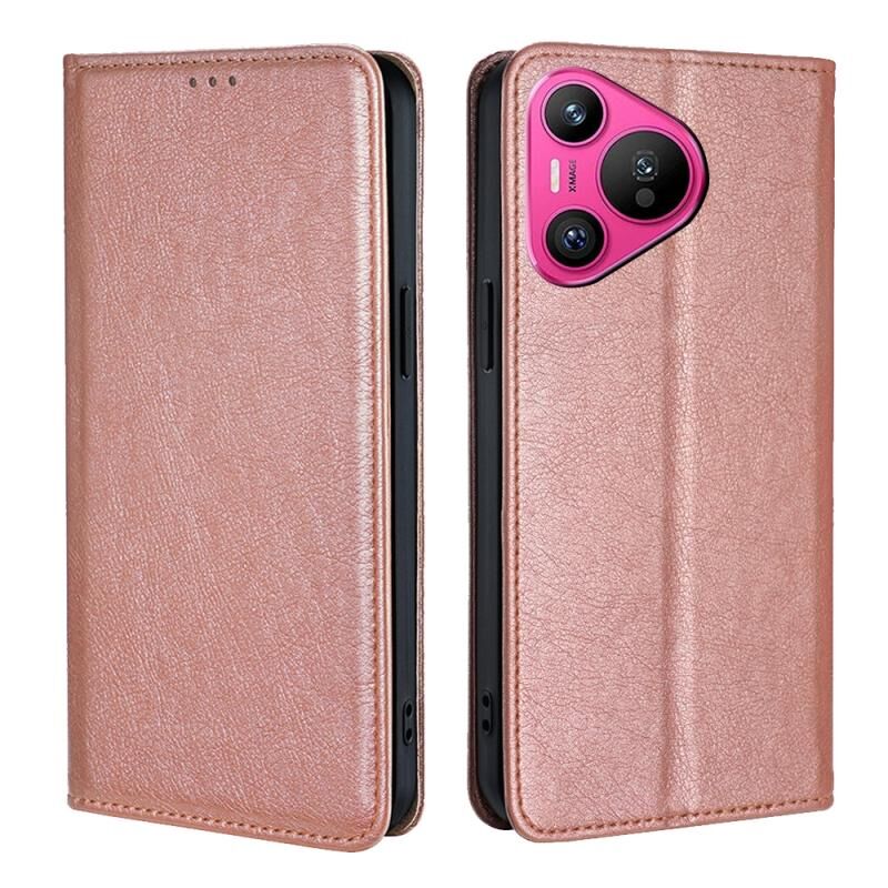 Για το Huawei Pura 70 Gloss Oil Solid Color μαγνητική δερμάτινη θήκη τηλεφώνου (Rose Gold)