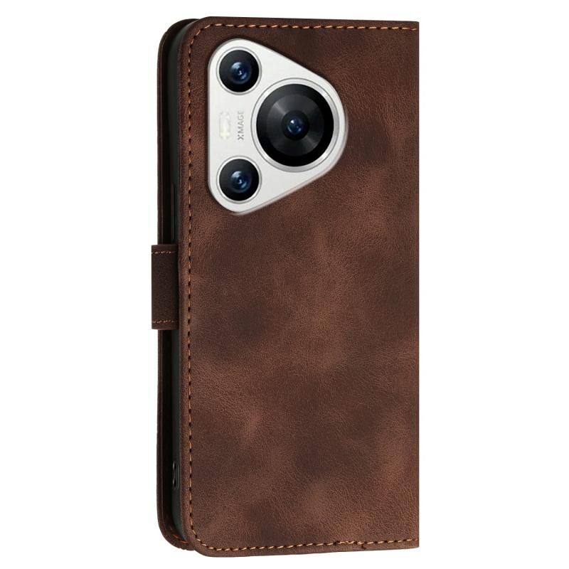 Θήκη τηλεφώνου Huawei Pura 70 Grid Butterfly Embossed Pattern από δέρμα με κορδόνι (Καφέ)