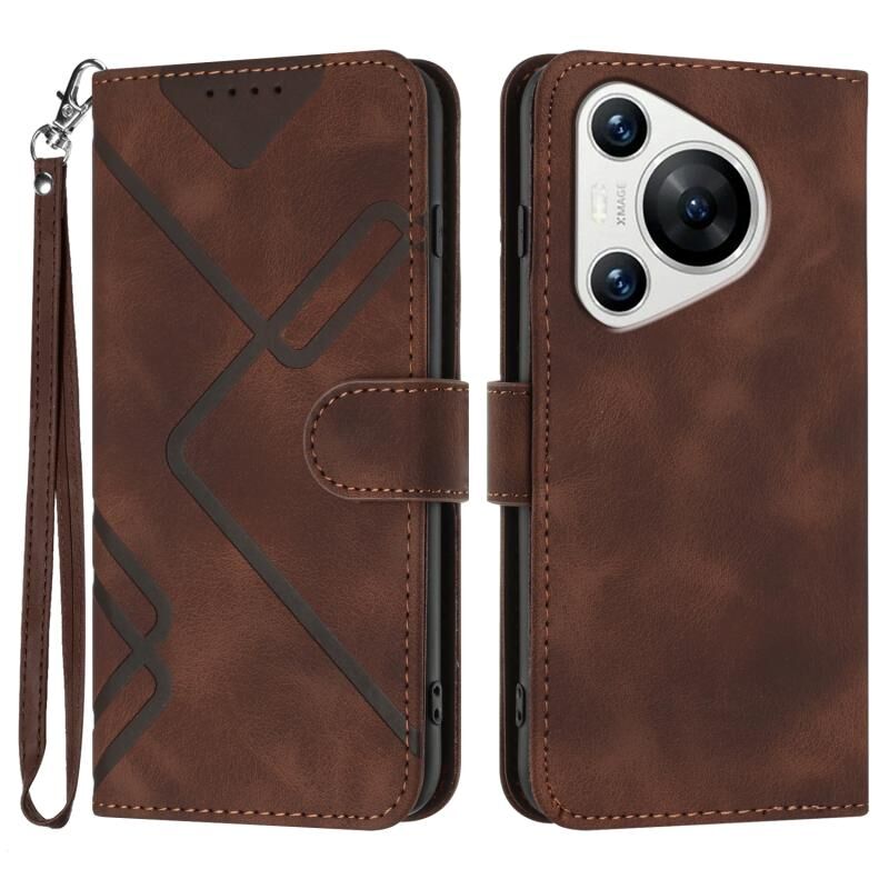 Για Huawei Pura 70 Γραμμή μοτίβο δέρμα αίσθηση δέρμα τηλέφωνο υπόθεση (καφέ)