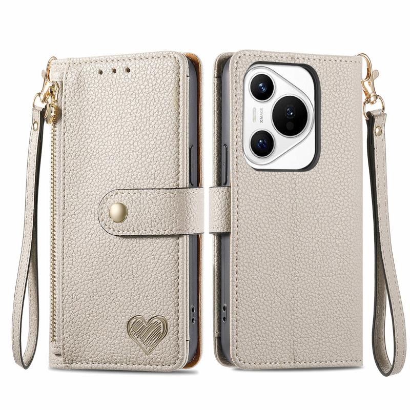 For Huawei Pura 70 Love Zipper Lanyard Leather Phone Case(Gray)