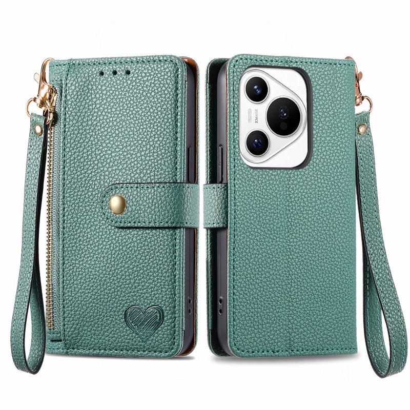 For Huawei Pura 70 Love Zipper Lanyard Leather Phone Case(Green)