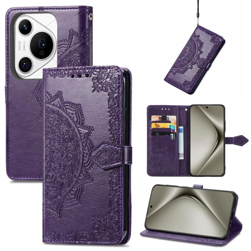 Θήκη τηλεφώνου Huawei Pura 70 Mandala Flower Embossed Leather (Χρυσό Ρόδι)