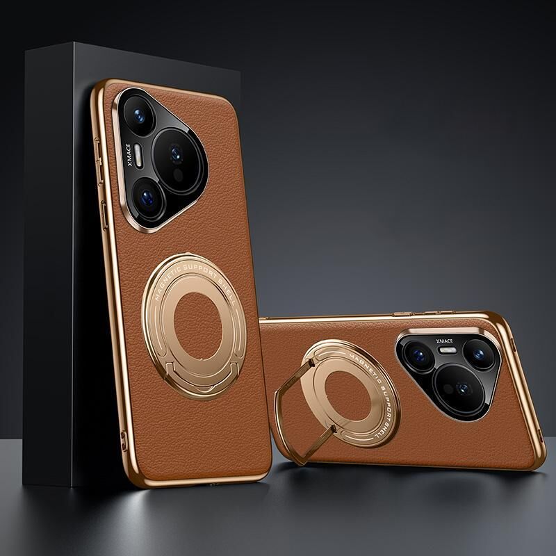 Θήκη τηλεφώνου Huawei Pura 70 Απλό Δέρμα Υδρικό Μεταλλικό Μαγνητικό (Γκρι)
