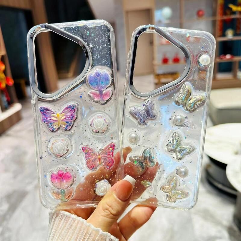 Θήκη τηλεφώνου Huawei Pura 70 Pro 3D πολύχρωμη κρυστάλλινη πεταλούδα TPU (Λουλούδια Πεταλούδας)