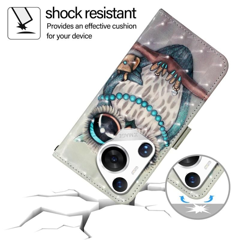 Θήκη τηλεφώνου δερμάτινη με οριζόντιο άνοιγμα και τρισδιάστατη ζωγραφική για Huawei Pura 70 Pro (Χρυσή Πεταλούδα)