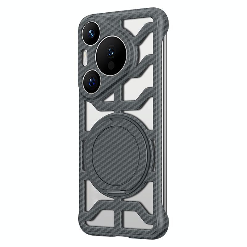 For Huawei Pura 70 Pro / 70 Pro+ Hollow Carbon Fiber Rotating Bracket MagSafe Phone Case(Grey)