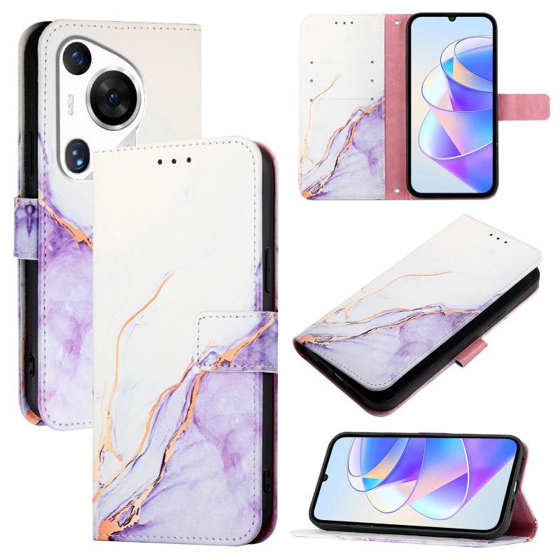 For Huawei Pura 70 Pro / 70 Pro+ PT003 Marble Pattern Flip Leather Phone Case(White Purple)