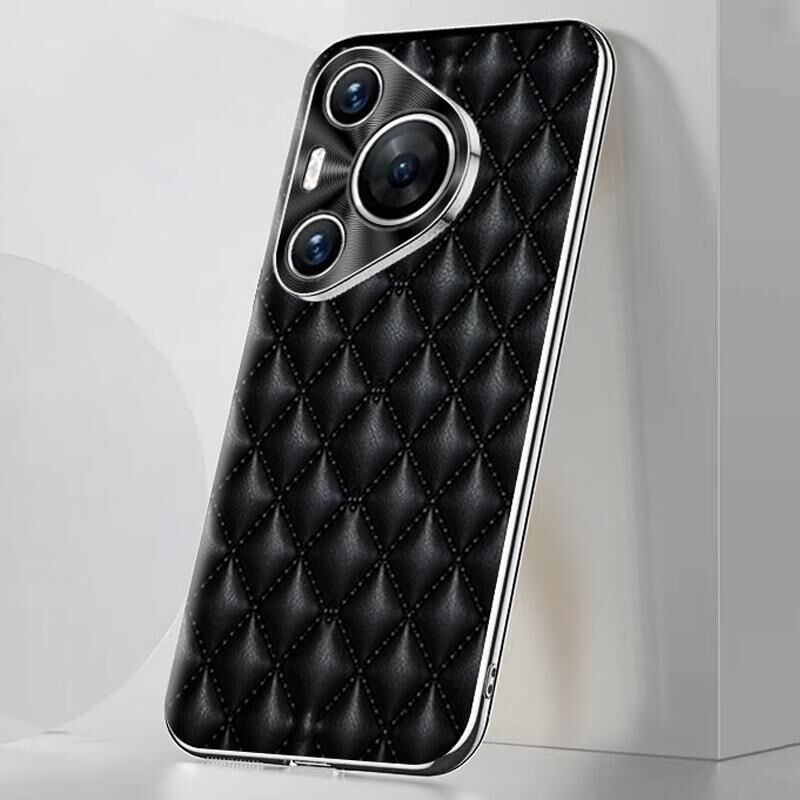 Για Huawei Pura 70 Pro / 70 Pro + Silver Edge Rhombic υφή PU δέρμα τηλέφωνο υπόθεση (μαύρο)