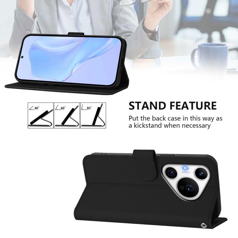 Για Huawei Pura 70 Pro / 70 Pro + δέρμα αισθάνονται στερεό χρώμα δερμάτινη θήκη τηλεφώνου με κορδόνι (μαύρο)