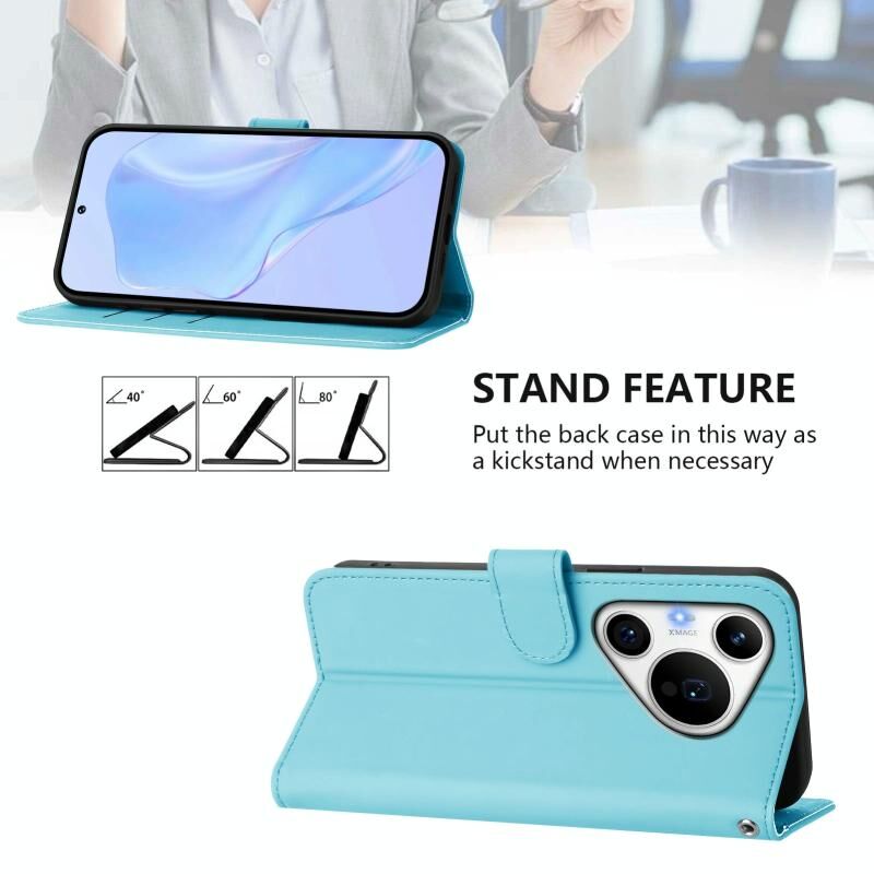 Για το Huawei Pura 70 Pro / 70 Pro + δέρμα αισθάνονται στερεό χρώμα δερμάτινη θήκη τηλεφώνου με κορδόνι (Sky Blue)