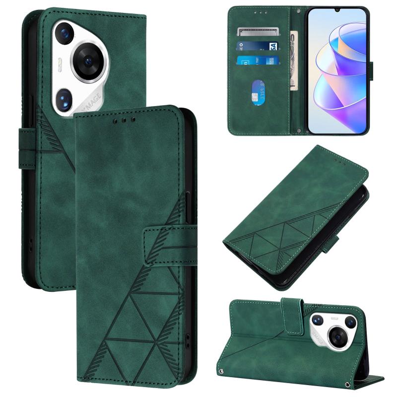For Huawei Pura 70 Pro Crossbody 3D Embossed Flip Leather Phone Case(Dark Green)