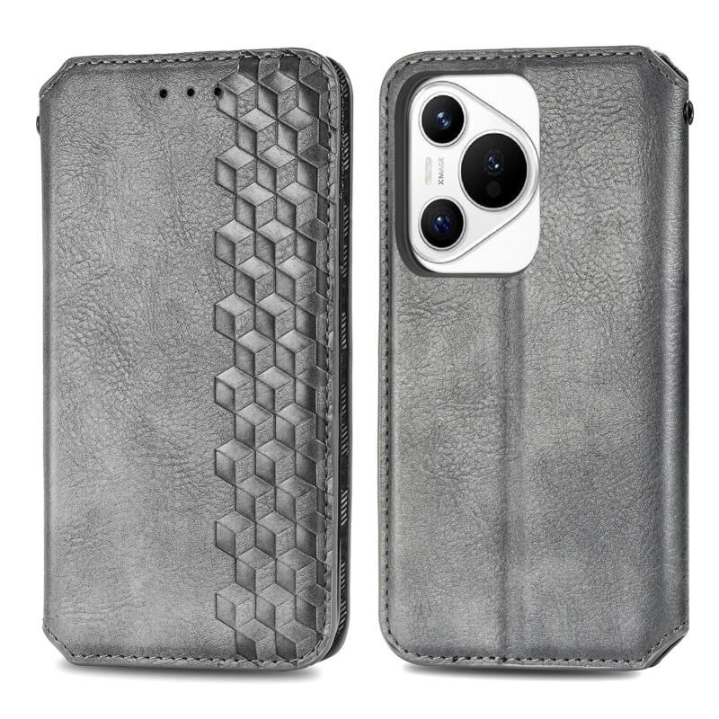 Θήκη τηλεφώνου Huawei Pura 70 Pro Cubic Grid Pressed Magnetic Leather (Γκρι)