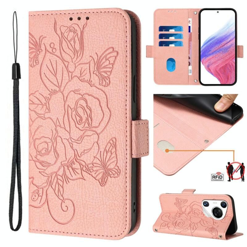 Για Huawei Pura 70 Pro ανάγλυφο Rose RFID Anti-theft δερμάτινη θήκη τηλεφώνου (ροζ)