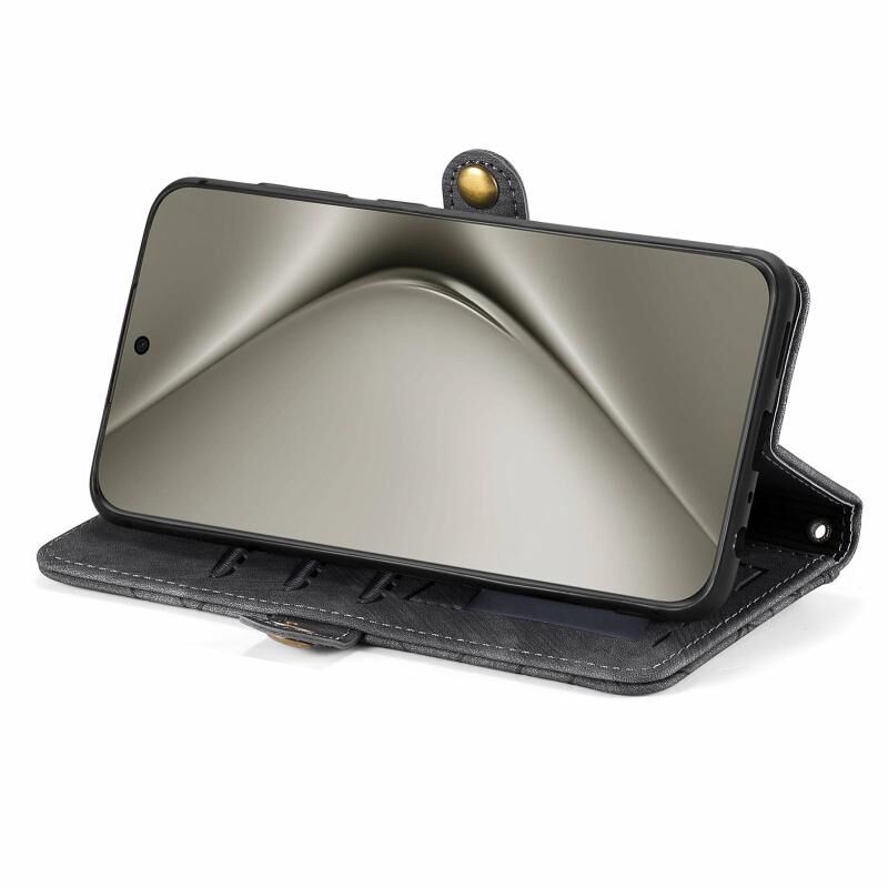 Για Huawei Pura 70 Pro Γεωμετρικό φερμουάρ πορτοφόλι πλευρά πόρπη δερμάτινη θήκη τηλεφώνου (Μαύρο)