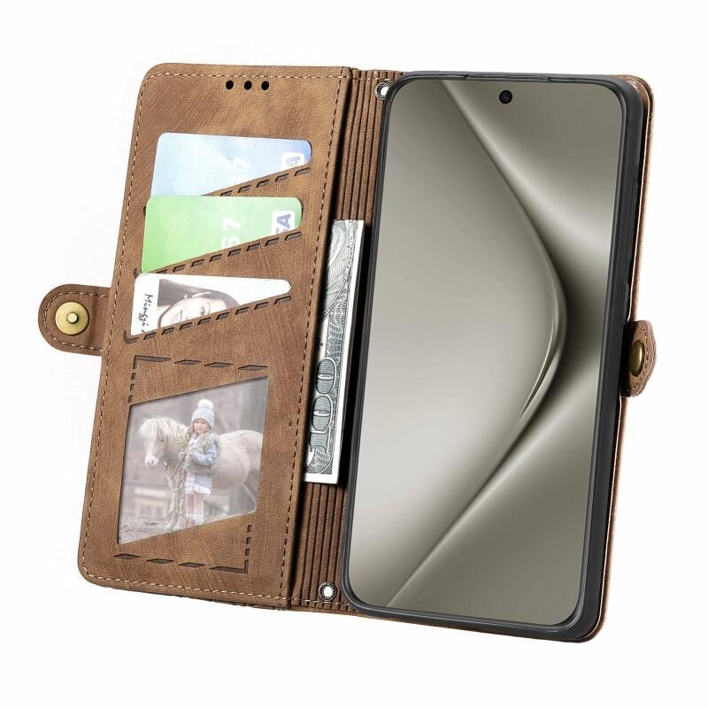 Για Huawei Pura 70 Pro Γεωμετρικό φερμουάρ πορτοφόλι πλευρά πόρπη δερμάτινη θήκη τηλεφώνου (Καφέ)