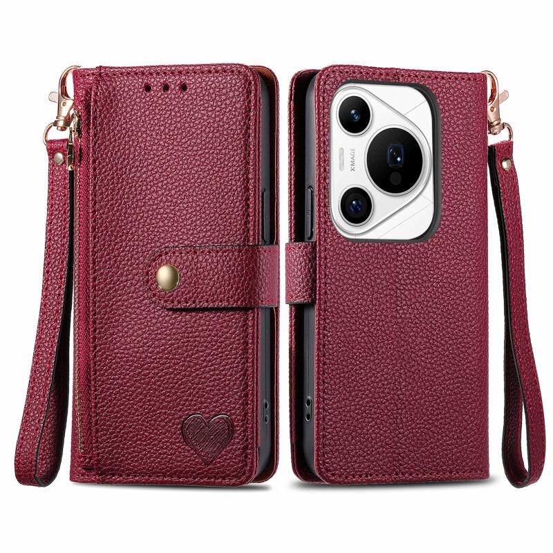 Θήκη τηλεφώνου Huawei Pura 70 Pro Love Zipper Lanyard από δέρμα (Κόκκινο)