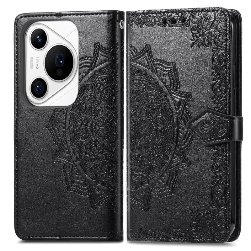 Θήκη τηλεφώνου Huawei Pura 70 Pro με ανάγλυφο σχέδιο λουλουδιού Mandala από δέρμα (Χρυσό Ρόδι)