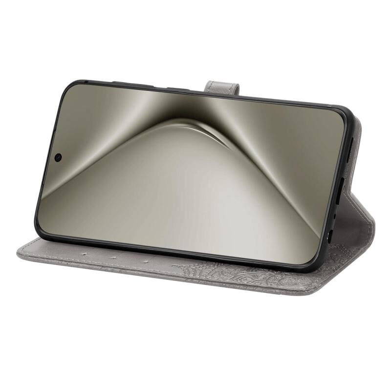 Θήκη τηλεφώνου Huawei Pura 70 Pro με ανάγλυφο σχέδιο λουλουδιού Mandala από δέρμα (Χρυσό Ρόδι)