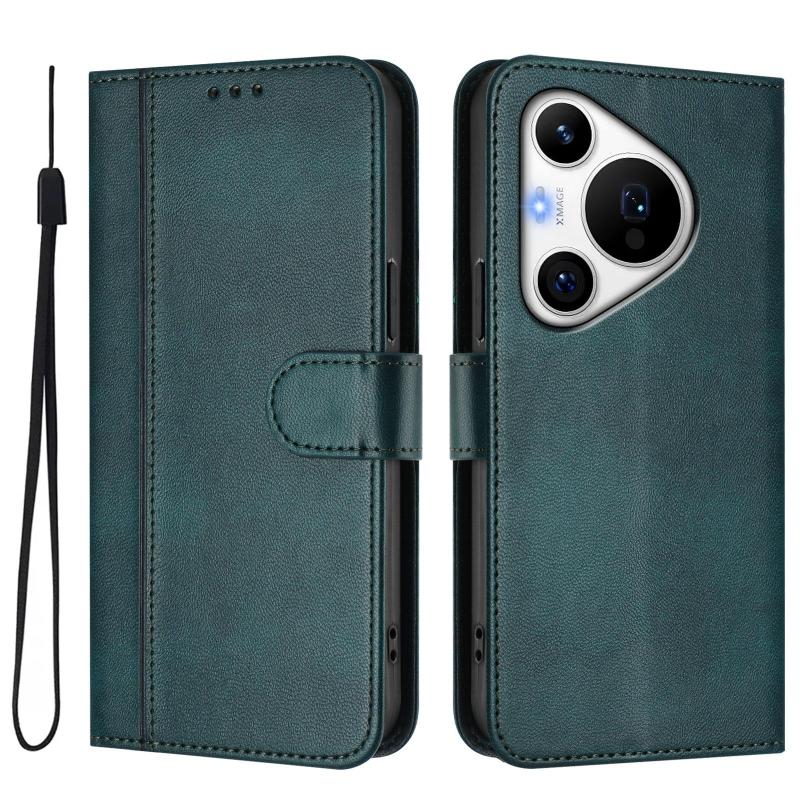 For Huawei Pura 70 Pro / Pura 70 Pro+ Line Splicing Buckle Retro Leather Phone Case(Dark Green)